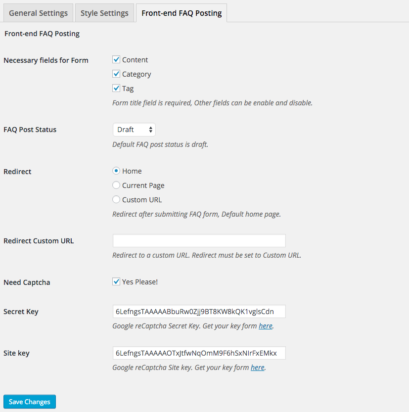 - Front-end FAQ submission system.