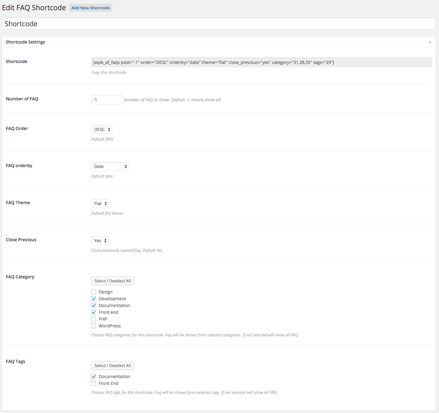 - FAQ Order and number of FAQ control form shortcode.