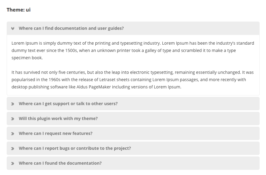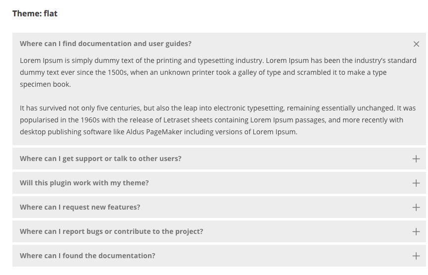 - theme : Theme for FAQ. Default: flat. Valid values: flat / ui